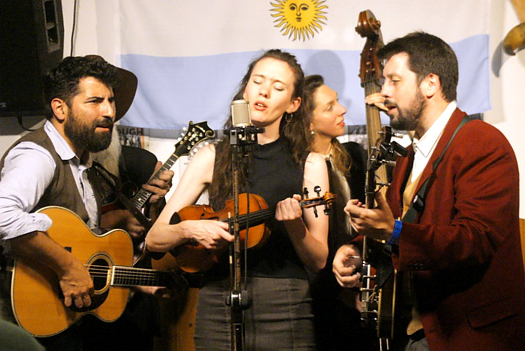 Die Gäste erlebten einen vergnüglichen Streifzug durch alle Sparten der Bluegrass-Music mit vielen Klassikern, Titeln von Bill Monroe oder Tony Rice, dargeboten mit viel Spielfreude. Die Instrumental-Soli waren virtuos, der Gesang wunderschön und auch der Humor kommt bei Estación 39 nicht zu kurz. Die meisten Argentinier haben bekanntlich spanische Wurzeln, doch nicht alle: Die junge Dame am Kontrabass, die uns auch mal eine kurze Tanzeinlage präsentierte, ist in Russland geboren und Dani-Boy, der Gentleman an der Mandoline, hatte einen deutschen Vater, von dem er auch unsere Sprache gelernt hat.